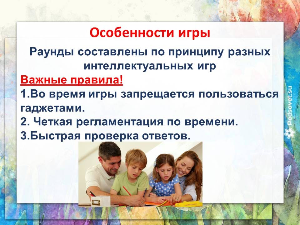 Условия реализации: игра подходит для проведения предметных неделей, классных и общешкольных мероприятий. Количество участников в команде самое оптимальное количество – 4-8 человек. В состав команды входят ученики и их родители. Игра рассчитана на 45-50 минут.