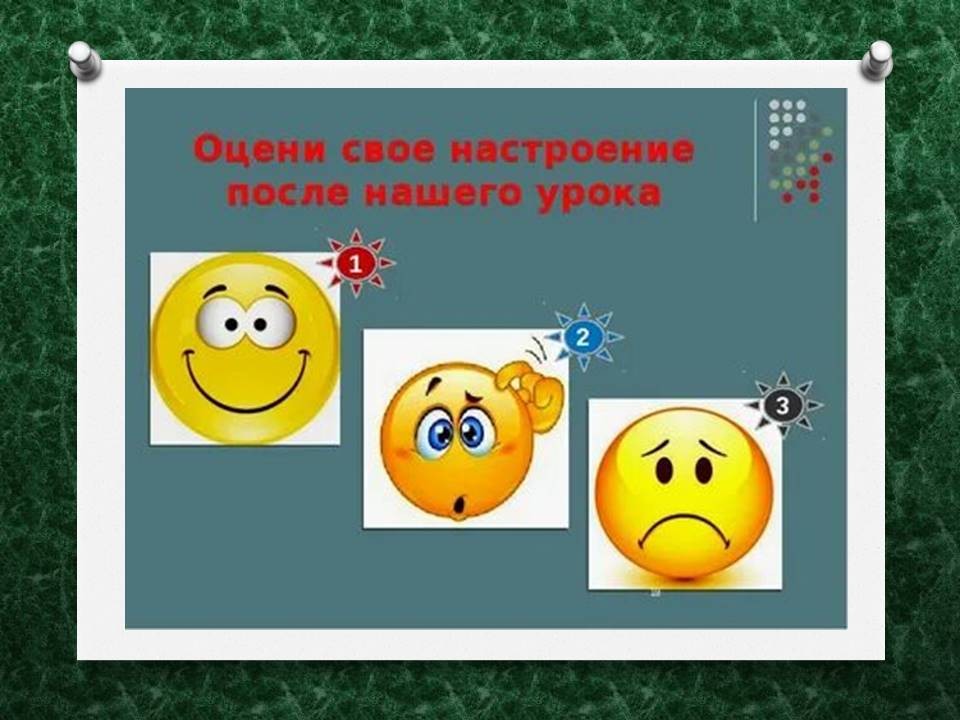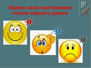 И в завершении нашего путешествия нарисуйте в рабочем листе тот смайлик, который соответствует вашему восприятию урока…. Покажите свои рисунки. (Учитель собирает листы).
