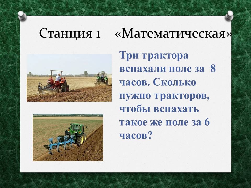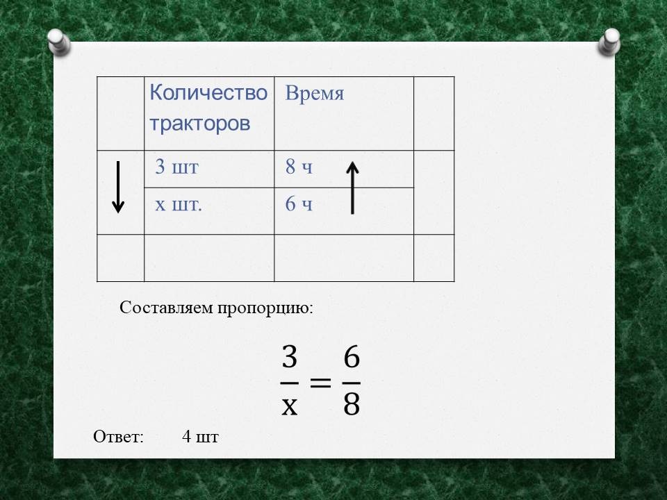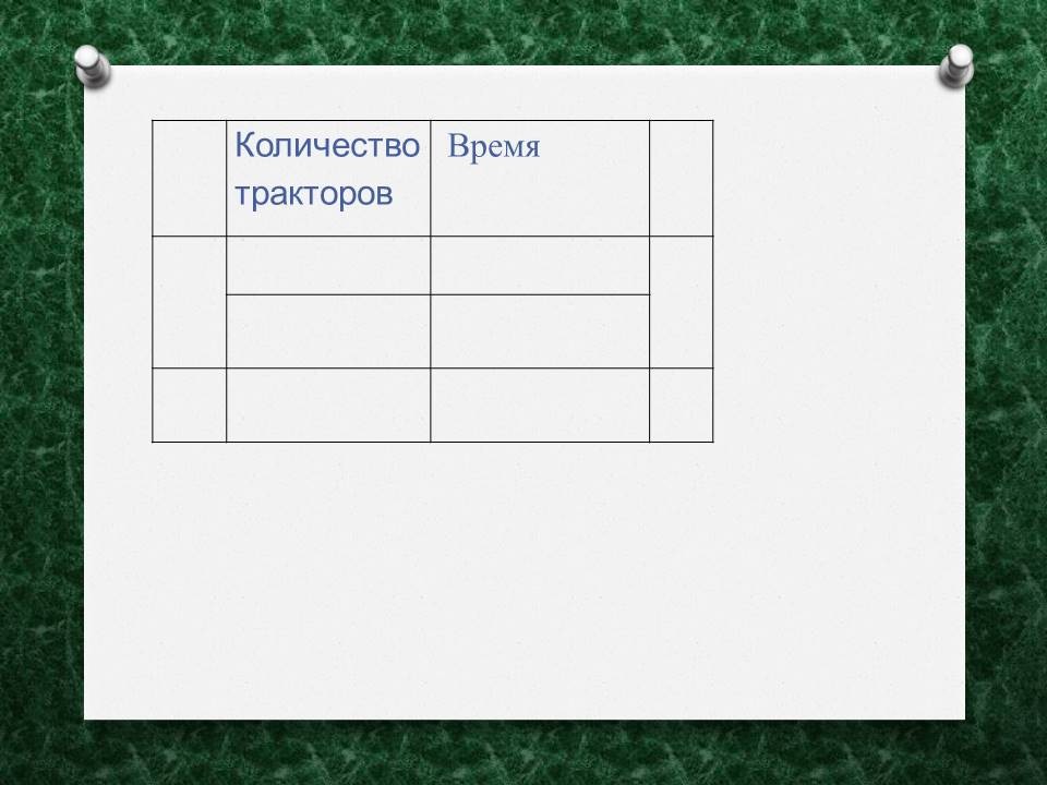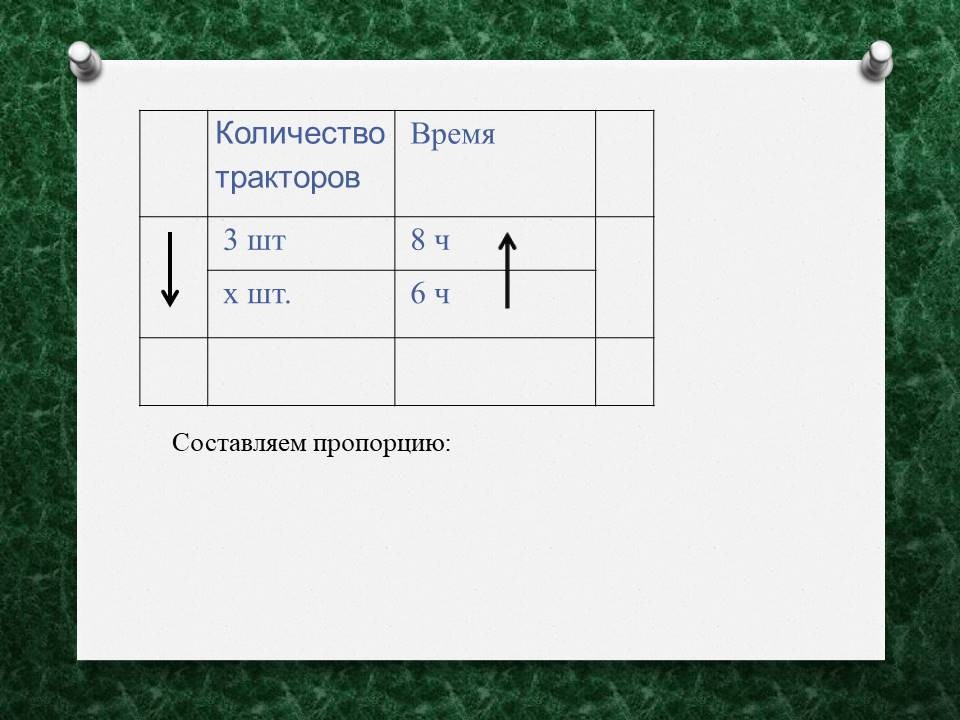 Задача № 1: Три трактора вспахали поле за 8 часов. Сколько нужно тракторов, чтобы вспахать такое же поле за 6 часов?