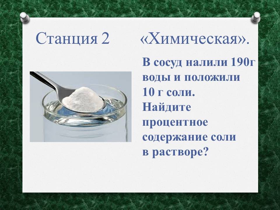 - Следующая остановка - станция «Химическая». Жители станции просили нас рассчитать процентное содержание соли в растворе.