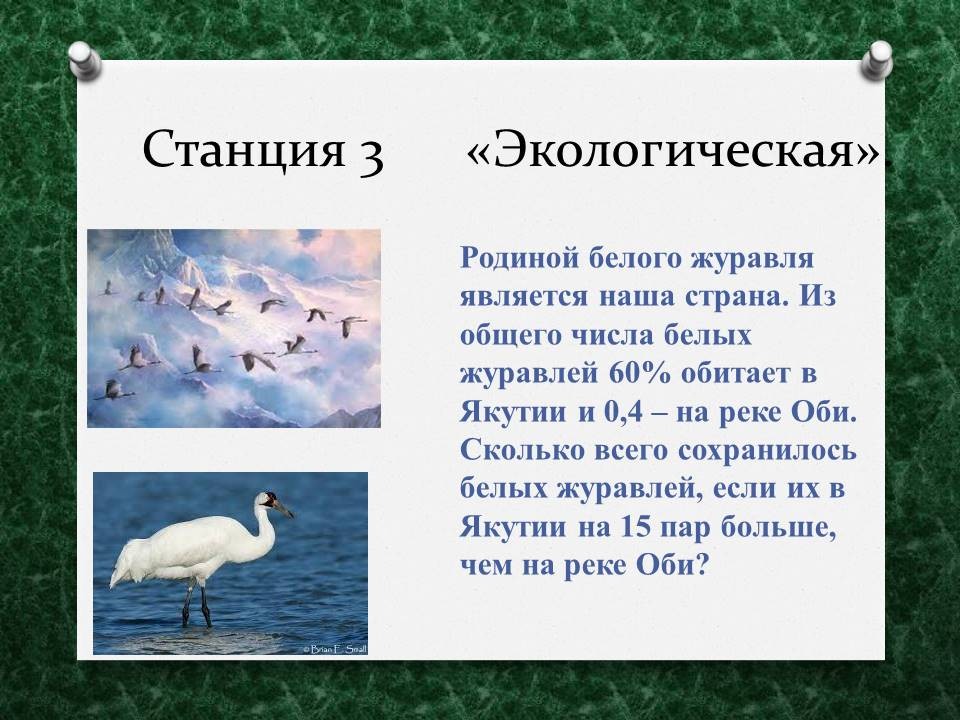 Задача №3.: Родиной белого журавля является наша страна. Из общего числа белых журавлей 60% обитает в Якутии и 0,4 – на реке Оби. Сколько всего сохранилось белых журавлей, если их в Якутии на 15 пар больше, чем на реке Оби?