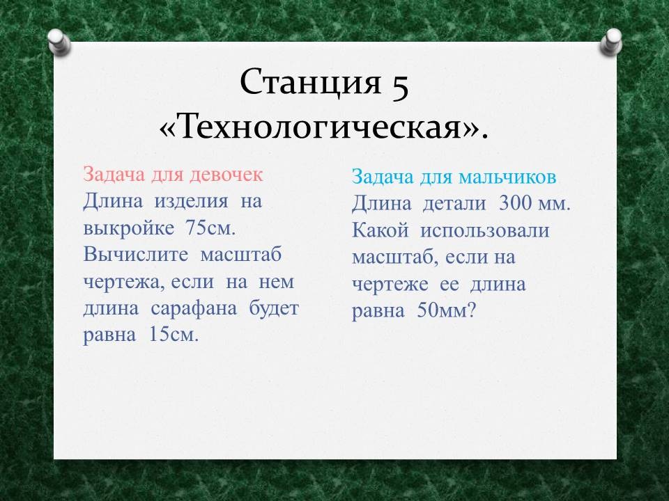Задача №5 - для девочек: Длина изделия на выкройке 75см. Вычислите масштаб чертежа, если на нем длина сарафана будет равна 15см.