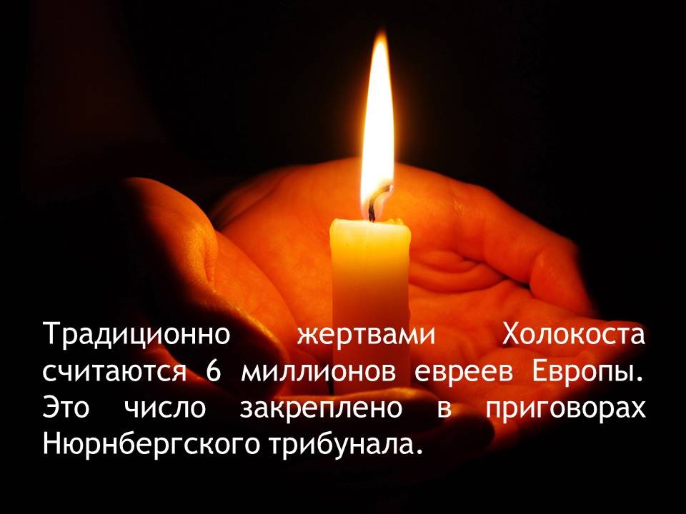 Ведущий 2. Во время второй мировой войны погибло около шести миллионов евреев. Именно это число закреплено в приговорах Нюрнбергского трибунала. Тем не менее полного поимённого списка жертв не существует.
