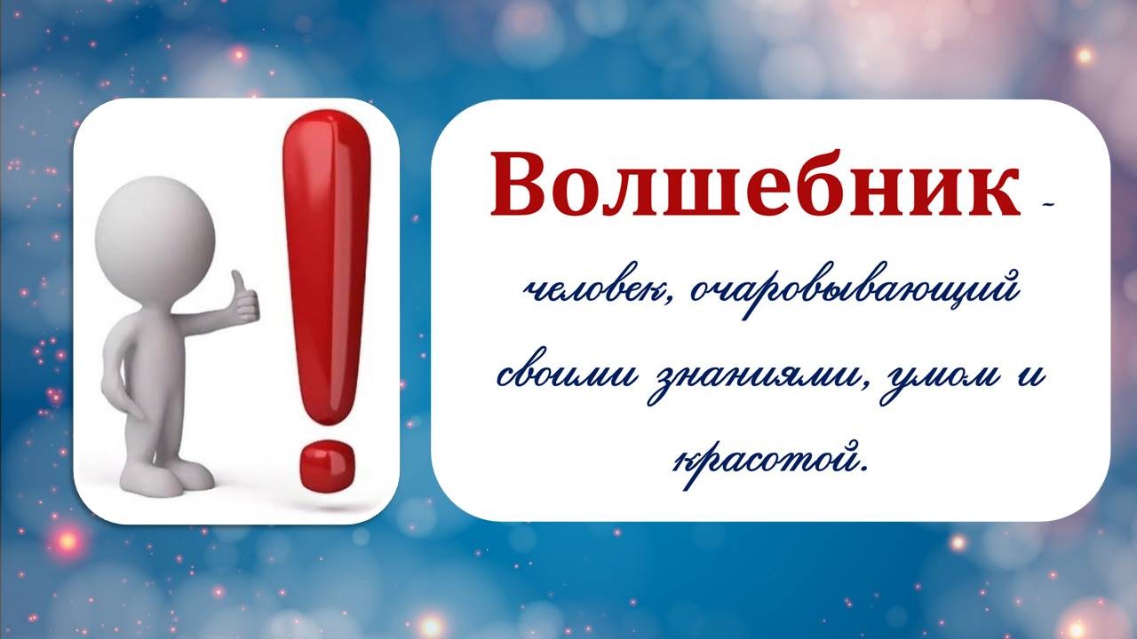 А теперь я попрошу вас по очереди вытянуть стикер с вопросом и постараться дать на него ответ. В начале урока я вам задала вопрос о волшебниках. В толковых словарях есть еще одно определение этого понятия: |