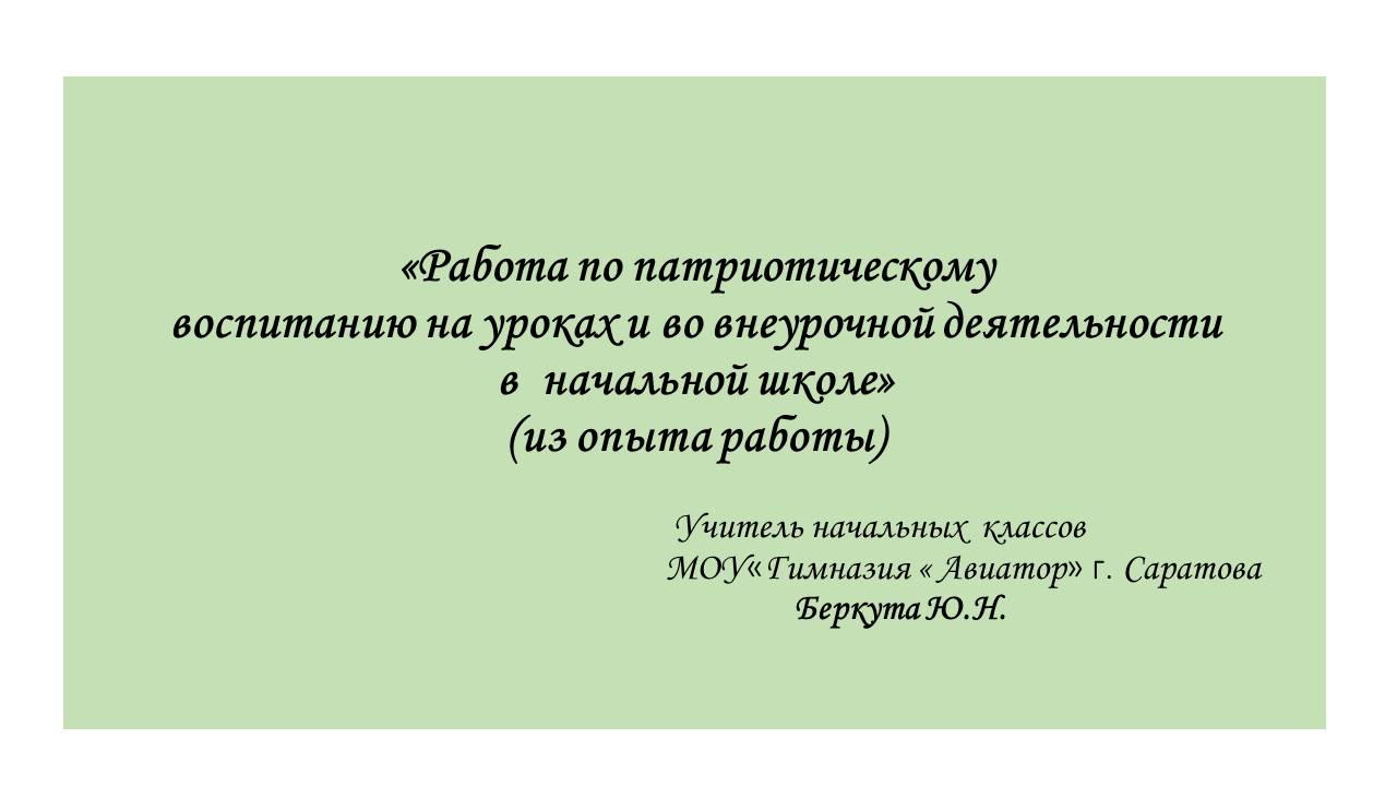 Патриотическое воспитание младших школьников Беркута Юлия Николаевна, учитель начальных классов Разделы: Начальная школа Работа выполнена в форме презентации 19.06.2025