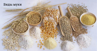 В зависимости от того, из какой зерновой культуры сделана мука, она бывает: пшеничной, ржаной, кукурузной, овсяной, гречневой, ячневой, гороховой. Для выпечки в основном используют пшеничную и ржаную муку, очень редко ячневую, гречневую или кукурузную.