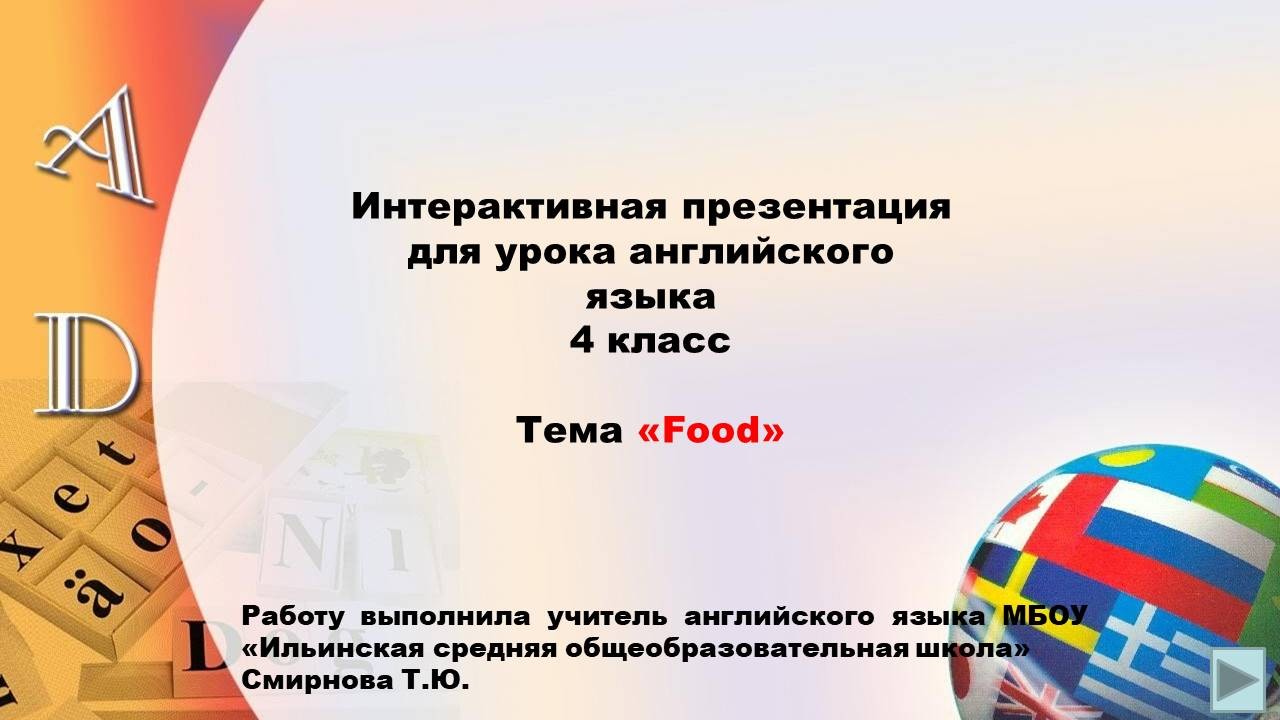 Интерактивная презентация для урока английского языка по теме "Food" в 4-м классе
