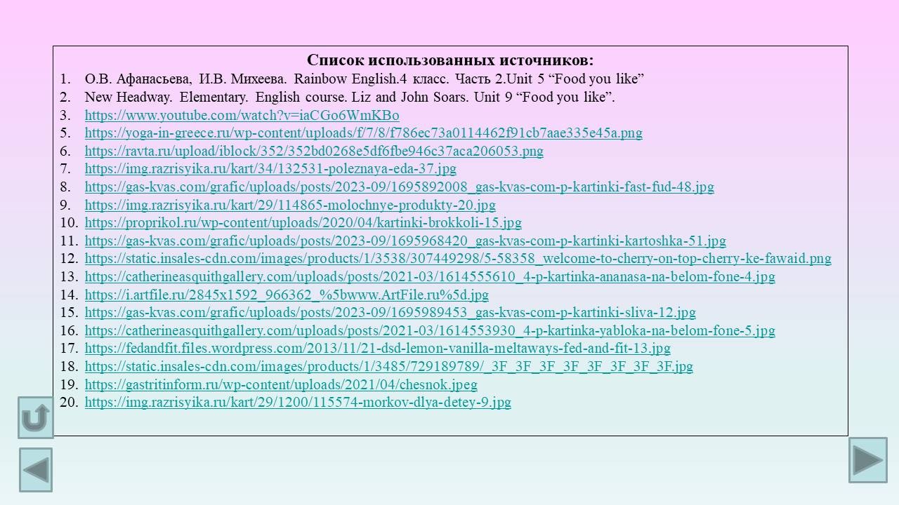 Ключевые слова: английский язык, food