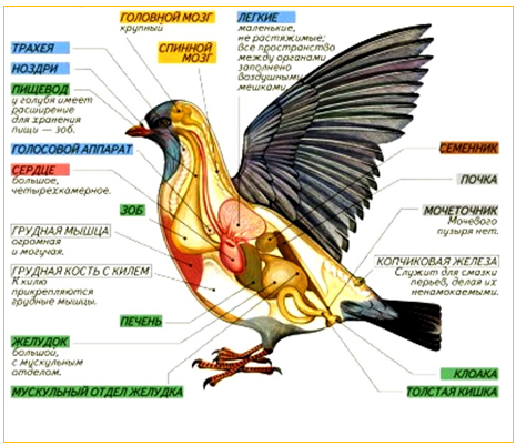Задачи: раскрыть особенности строения систем внутренних органов птиц в связи с полетом.