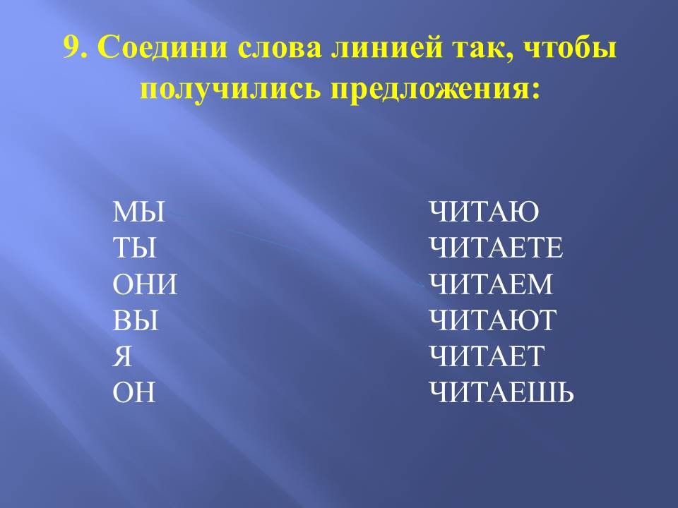 Соедини слова линией так, чтобы получились предложения: