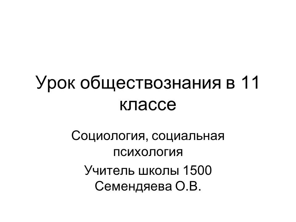 Презентация к уроку обществознания по теме "Социология, социальная психология". 11-й класс