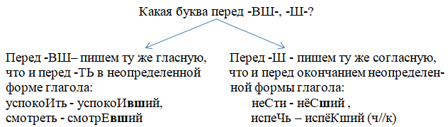 Вот какую логическую схему составили ребята при изучении темы «Правописание суффиксов действительных причастий прошедшего времени».