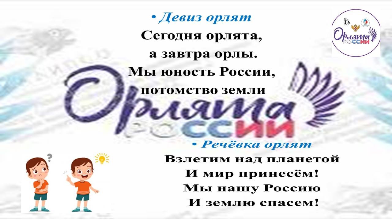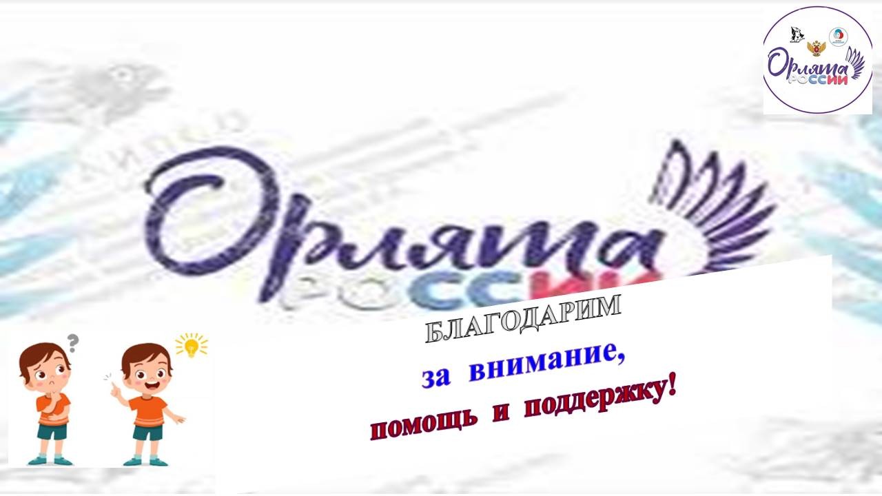 Сегодня мы все вместе стоим у истоков первой за последние десятилетия Всероссийской программы для младших школьников. Мы надеемся, что с каждым годом всё больше мальчишек и девчонок будут становиться её участниками. Программа «Орлята России» подарит каждому из нас возможность путешествовать не только по школьным учебникам, но и по интересным направлениям детства. «Орлята России» помогает ребятам войти в этот сложный мир и постепенно становиться настоящими патриотами своей Родины!