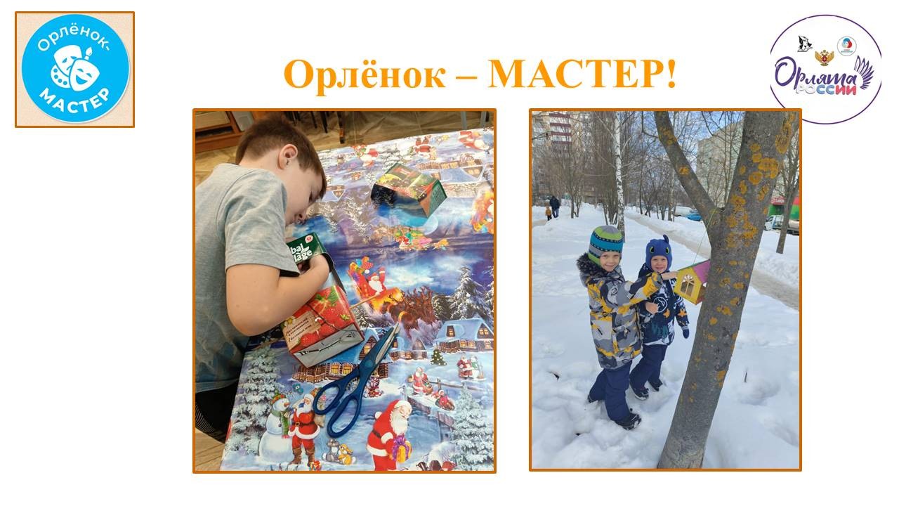 3. Трек «Орлёнок – Мастер» с символом «Шкатулка мастера» под девизом «Орлят России творческий полёт к вершинам мастерства зовет!» отправляет нам в дошкольное учреждение для коллективного творческого дела.