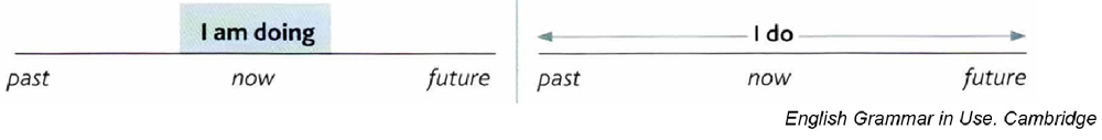 Во всех трех русских предложениях использовано настоящее время. Однако в английских предложениях мы использовали три разных грамматических времени. Если проанализировать характер каждого действия, разница существенная. Предложение «Она играет в теннис» выражает постоянное действие, происходящее с какой-то частотой (редко, иногда, часто, никогда или всегда). В этом случае используется The present simple tense. Когда мы говорим«Посмотри, она играет в теннис», мы не знаем, делает ли она это регулярно, но говорящий хочет привлечь внимание к тому, что на его глазах происходит (длится, находится в процессе) какое-то действие, которое для данной ситуации имеет временный характер. Для этого случая подходит The present continuous tense. В третьем случае «Она играет в теннис уже полчаса» действие началось в прошлом и продолжается в настоящем. Характер этого действия таков, что оно словно одной рукой держится за прошлое, а другой машет теннисной ракеткой в настоящем. В данном случае прошлое связано с происходящим в настоящем действием, и эти составляющие складываются в The present perfect continuous tense.