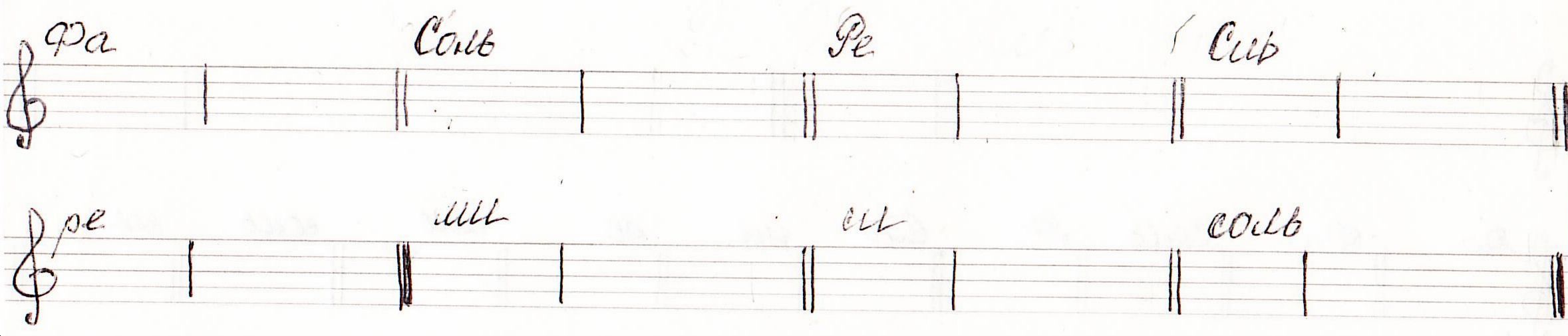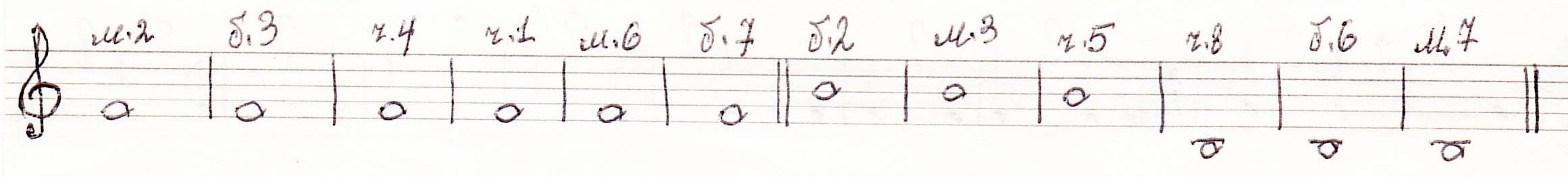 25. Построить 6 интервалов от звука «фа»↑ (м.2, б.3, ч.4, ч.1, м.6, б.7) и 6 интервалов от звука «си»↑ (б.2, м.3, ч.5, ч.8, б.6, м.7). <Рис.38>: