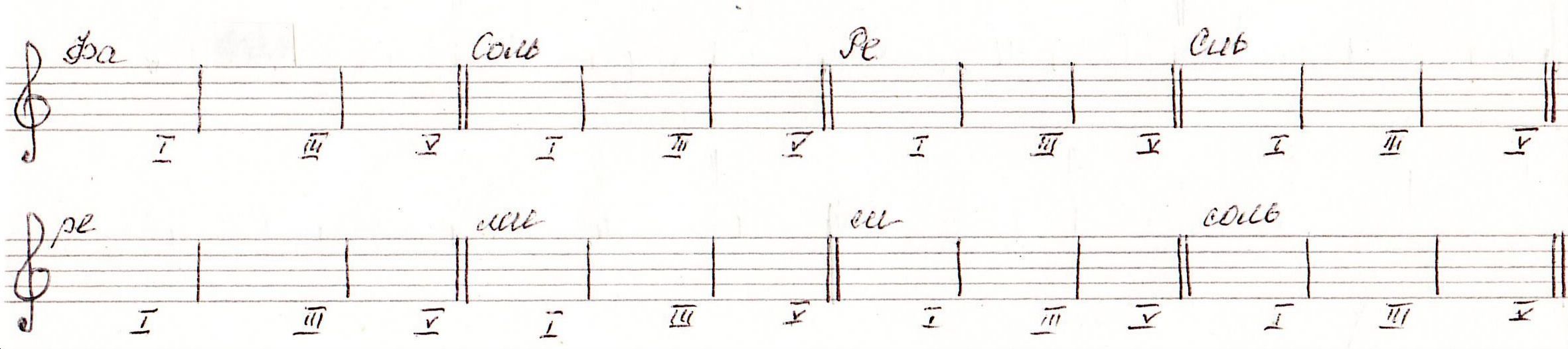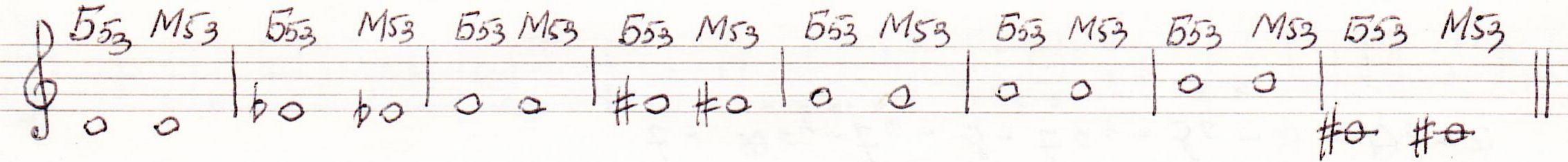 35. Построить Б5/3 и М5/3 от звуков ре, миb, фа, до# - вверх; от фа#, соль, ля, си, - вниз. <Рис.50>: