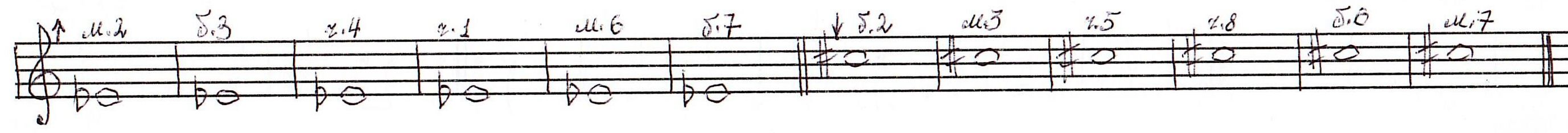 27. Построить от звука «миb»↑ м.2, б.3,ч.4,ч.1,м.6, б.7 и от звука до# ↓ б.2, м.3, ч.5, ч.8, б.6, м.7.<рис.40>: