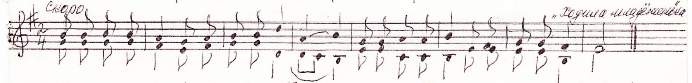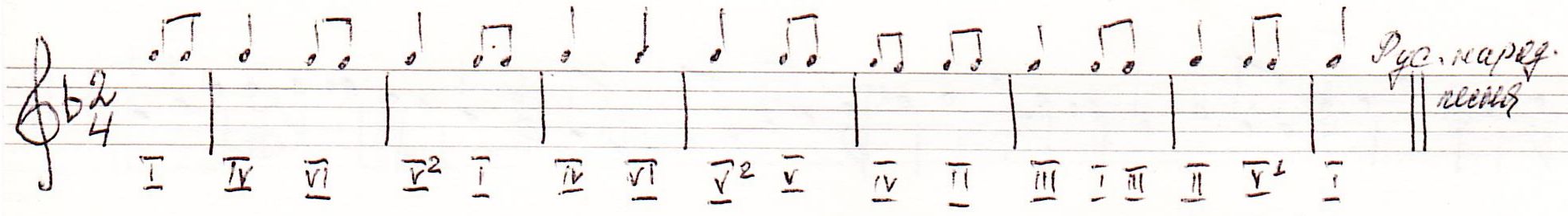 10. Поставить к мелодии народной песни штили, определить и написать тональность, вид лада. <Рис.9>: