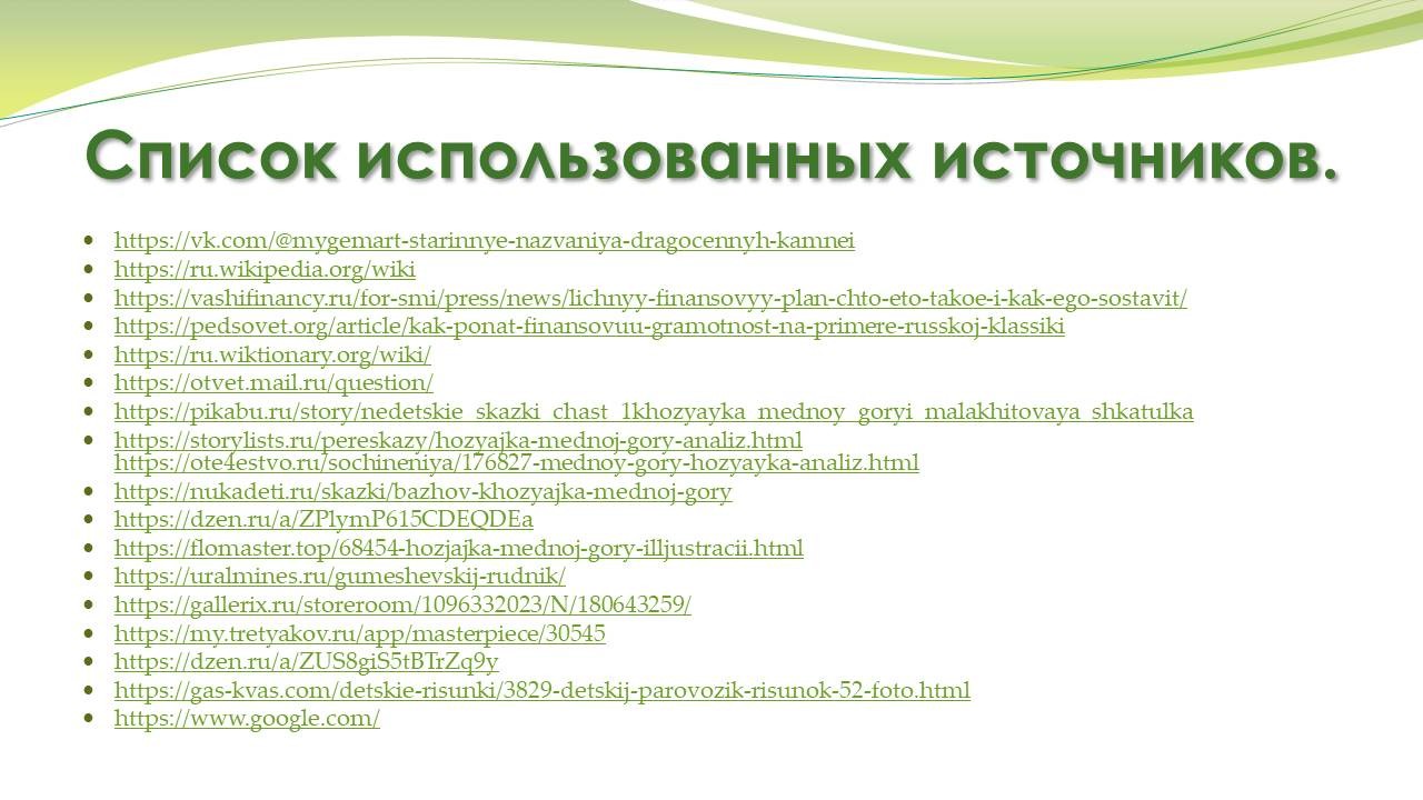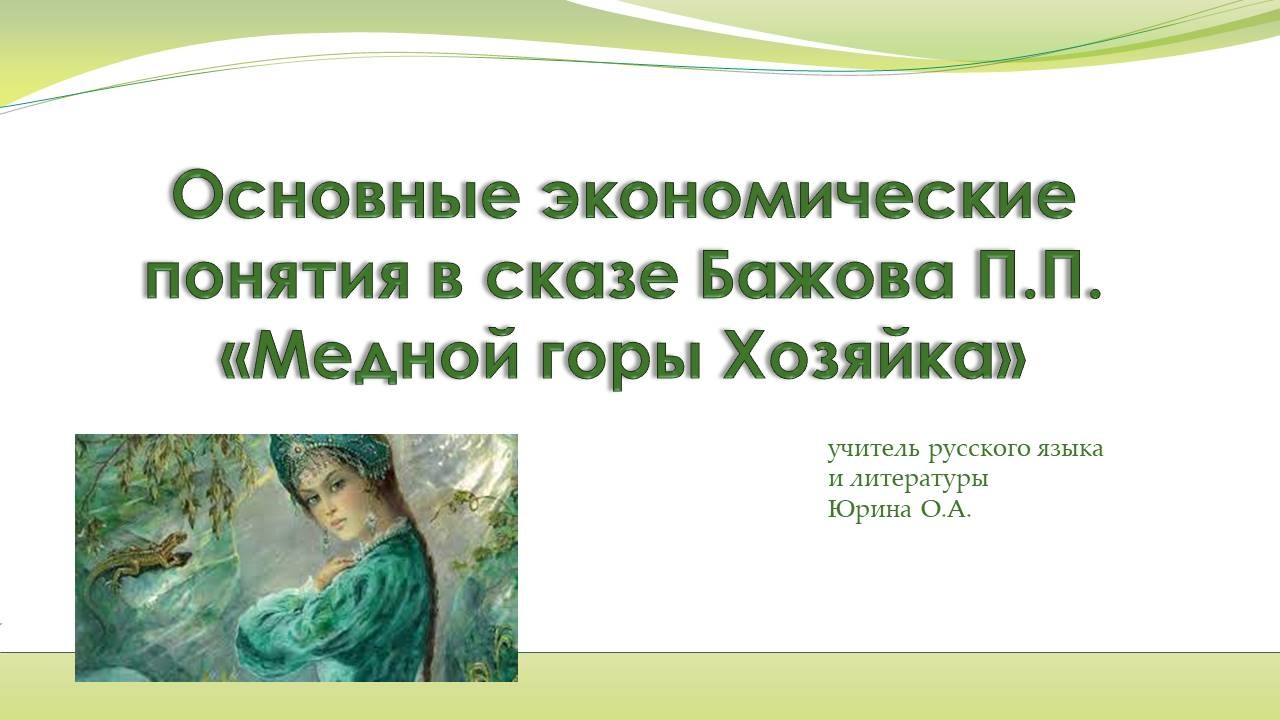 Основные экономические понятия в сказе Бажова П.П. «Медной горы Хозяйка»