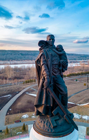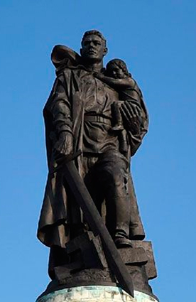 Всемирно известный советский мемориальный комплекс в Трептов-парке, где похоронены около пяти тысяч советских воинов, – это фигура советского солдата, в одной руке которого – меч, разрубающий фашистскую свастику, на другой – спасенная из развалин поверженного Берлина маленькая немецкая девочка. В основании памятника расположен мавзолей.