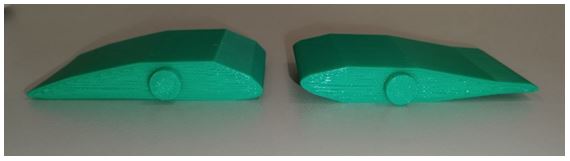 Перейдем к эксперименту. Для проведения эксперимента нам понадобятся: устройство для крепления крыла, изготовленное на 3D-принтере (рисунок 1) (для того, чтобы воздушный поток не смещал установку для крепления крыла, в нее помещается груз), модели крыла симметричной (эллиптической) и ассиметричной (арочной) формы (рисунок 2), также изготовленные на 3D-принтере (геометрические размеры крыльев должны быть одинаковыми), транспортир, воздуходувка (поток воздуха должен быть равномерным и полностью обдувать крыло, при необходимости перед воздуходувкой можно установить самодельную модель аэродинамической трубы), штатив для закрепления воздуходувки, весы, маркер.