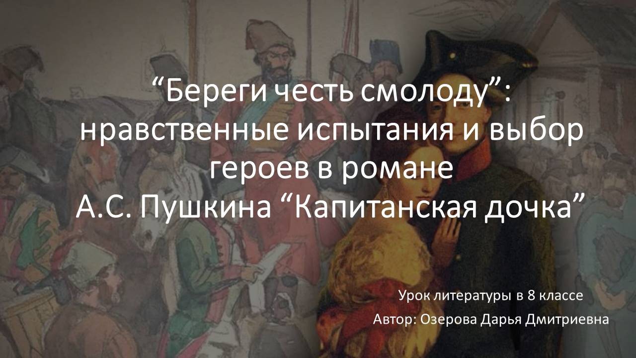 “Береги честь смолоду”: нравственные испытания и выбор героев в романе А.С.Пушкина “Капитанская дочка”