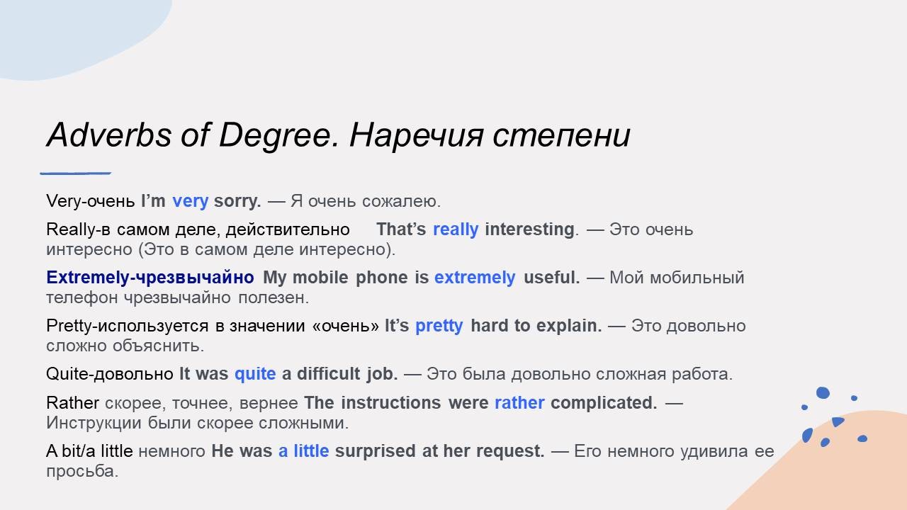 Презентация к уроку английского языка по теме "Наречия степени" для 8-го класса