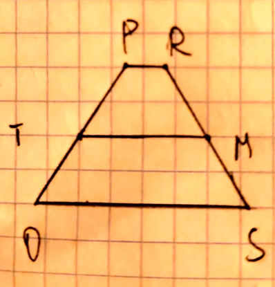 (Можно предположить, что ТМ средняя линия, но это не доказано. Тогда можно найти площадь этой трапеции, умножив среднюю линию на высоту)