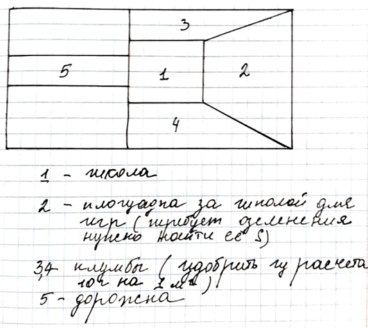 - Вычислить площадь участка 2 за школой, чтобы узнать, сколько укрывного материала потребуется