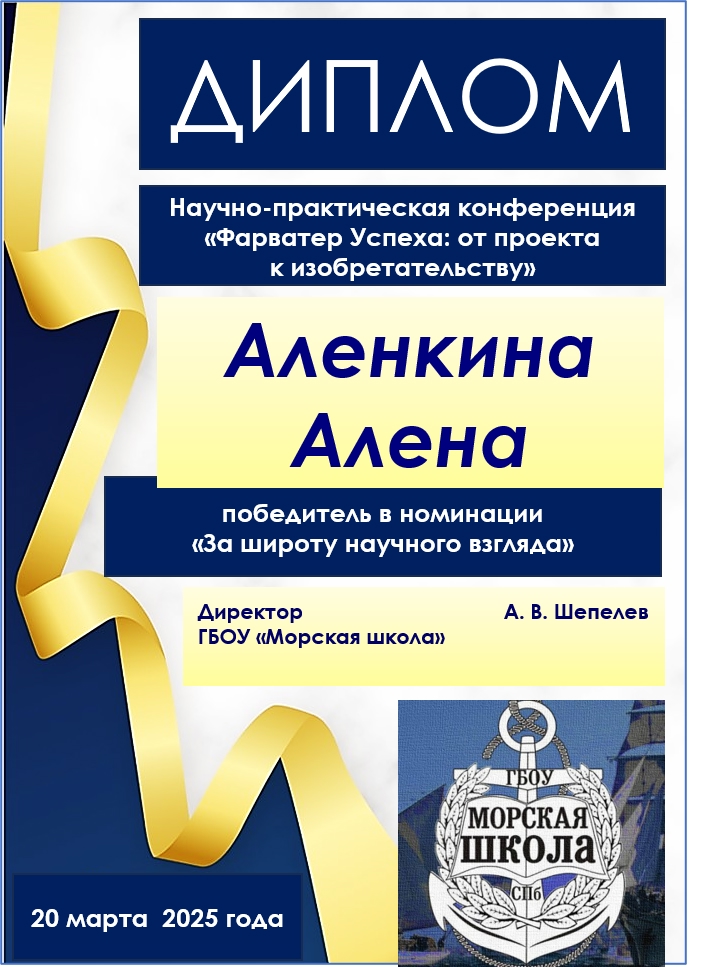 10.1. Все участники конференции награждаются Дипломами победителей в номинациях: «За красоту научного эксперимента», «За ораторское искусство», «За актуальность исследования», «За исследовательское мастерство», «За широту научного взгляда», «За нетривиальный подход к исследуемой проблеме», «За воплощение творческого замысла» (образец в Приложении 6).