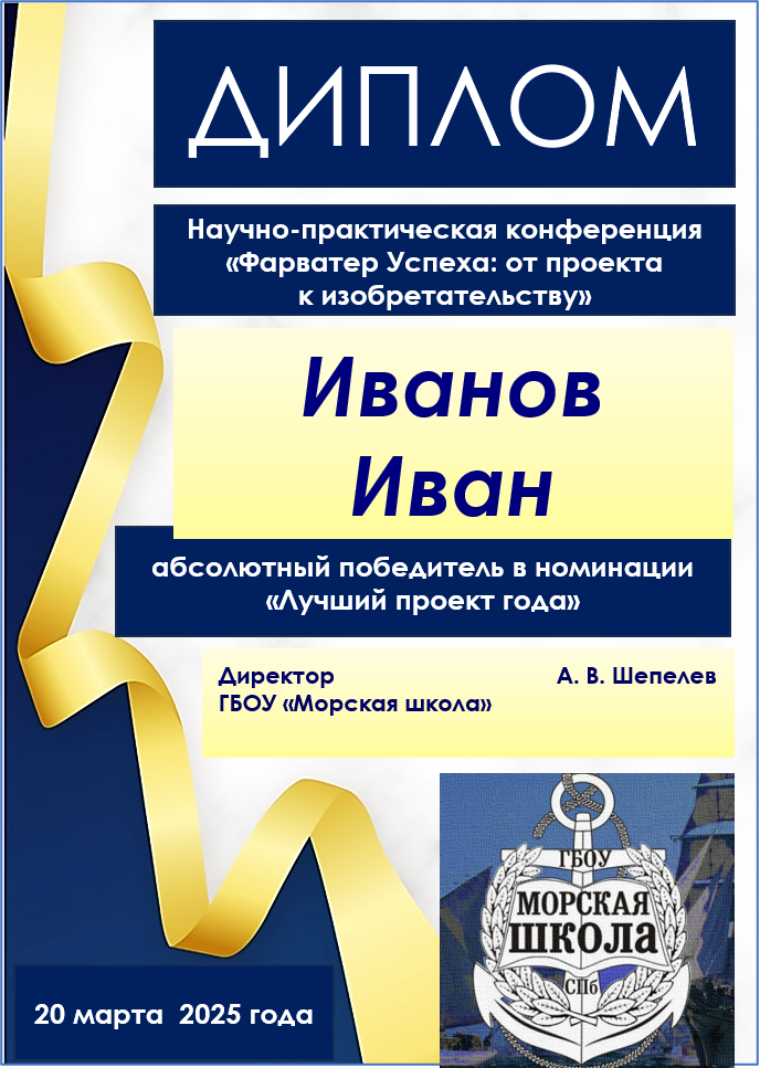 10.2. Авторы лучших проектов по каждому направлению награждаются Дипломами победителей в номинации «Лучший проект» (образец в Приложении 7) и памятными значками (Приложение 8).