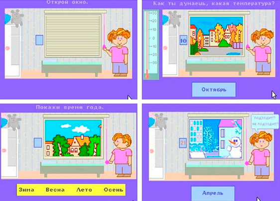 Программный продукт "Мир за твоим окном" для старших дошкольников и младших школьников с нарушениями слуха, речи, задержкой психического развития (Королевская Т.К., Кукушкина О.И., Гончарова Е.Л.). Множество программ, специально предназначенных для обучения отдельным предметам: математике, развитию речи, родному языку и т.д. Как правило, все детские игровые компьютерные программы носят коррекционный характер (Е.И.Никольская).