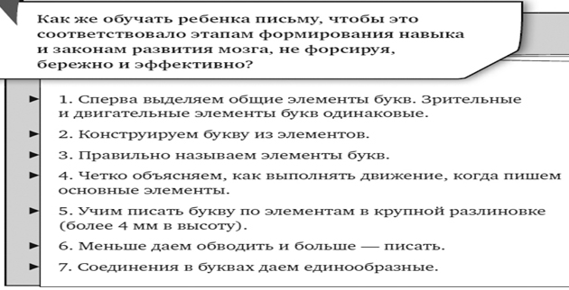 Нейропсихологический подход обучения письму обеспечивает рекомендацию ФГОС НОО по оформлению письменных работ учащихся. Например, все записи в тетрадях должны вестись каллиграфически аккуратным, чётким и разборчивым почерком.