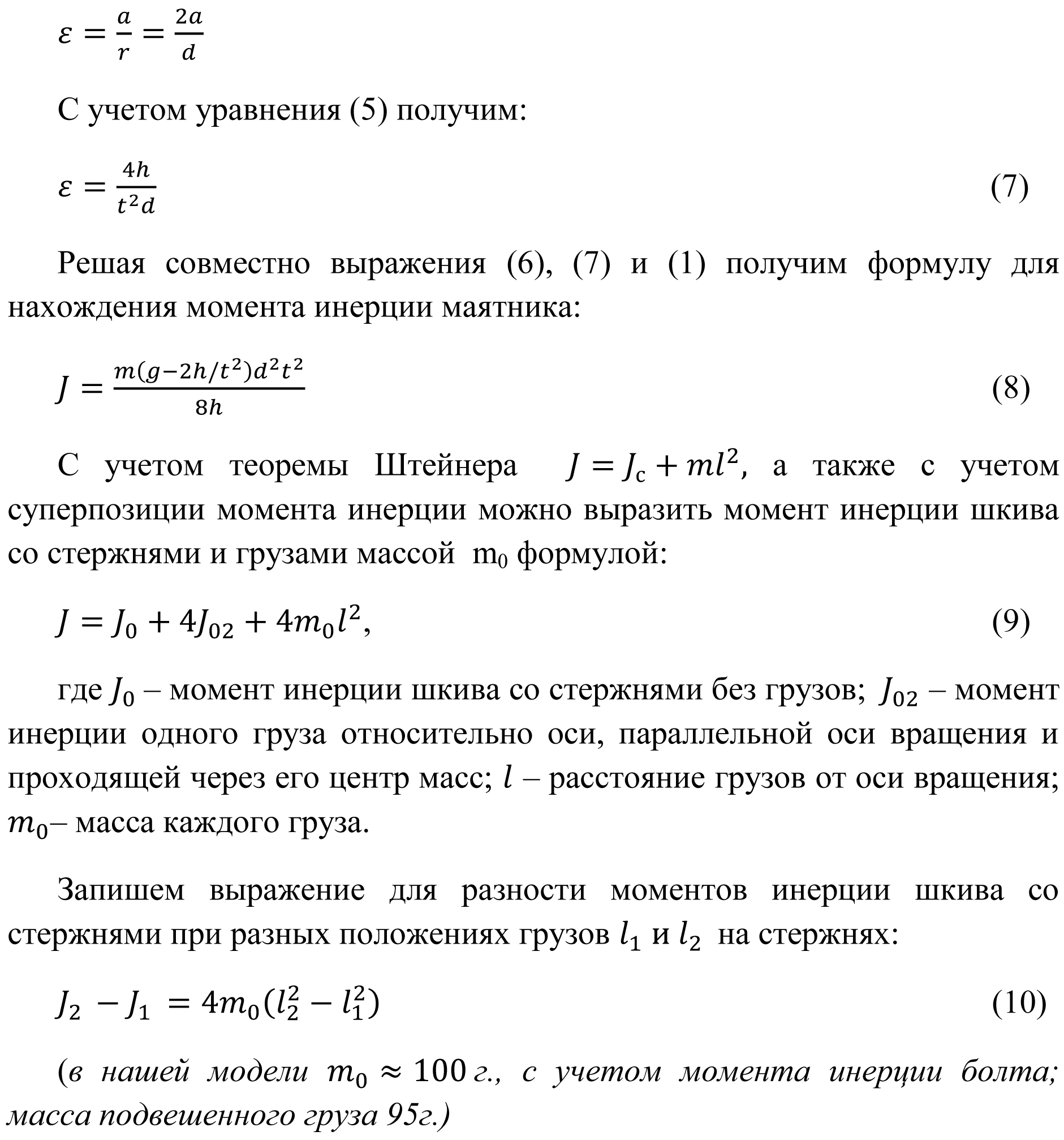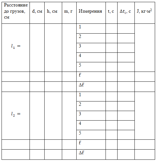 - Вычислить по формуле (8) момент инерции для нового расстояния подвижных грузов от оси вращения.