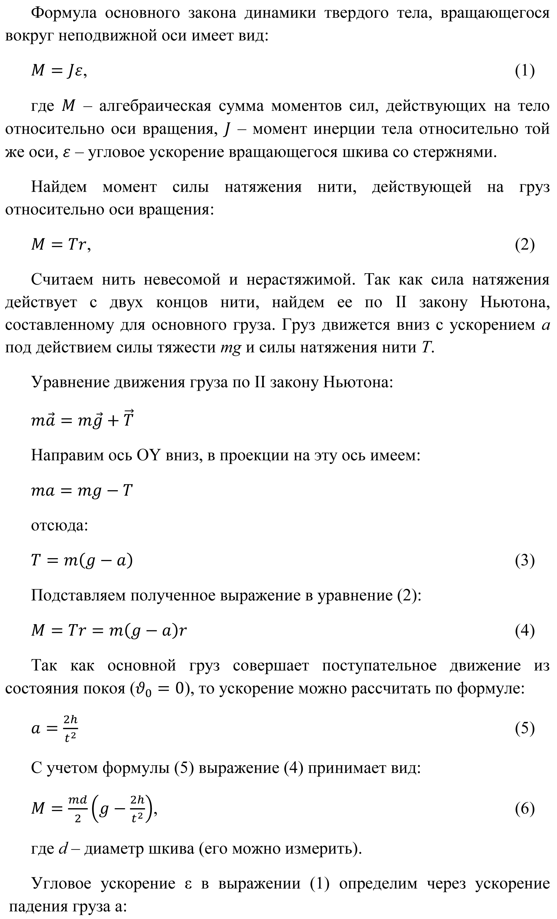 - Вычислите момент инерции шкива со стержнями по формуле (8).