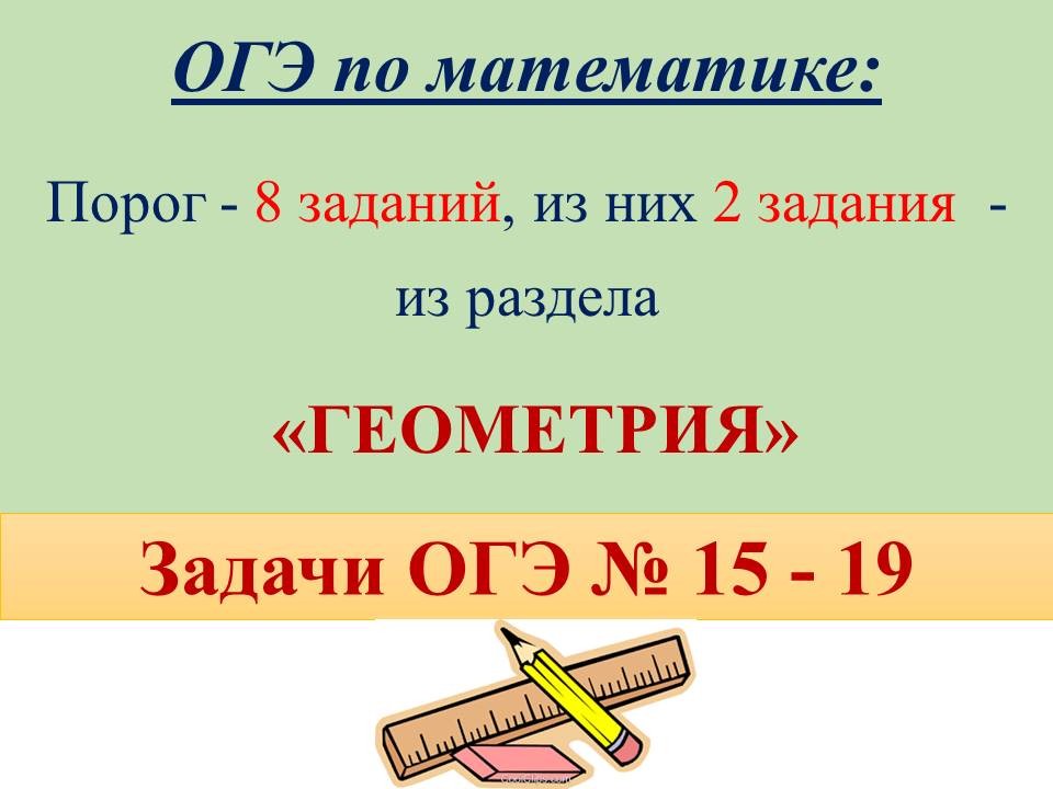 - Повторить способы решения геометрических и алгебраических задач ОГЭ первой части, проработать алгоритмы и формулы решений;