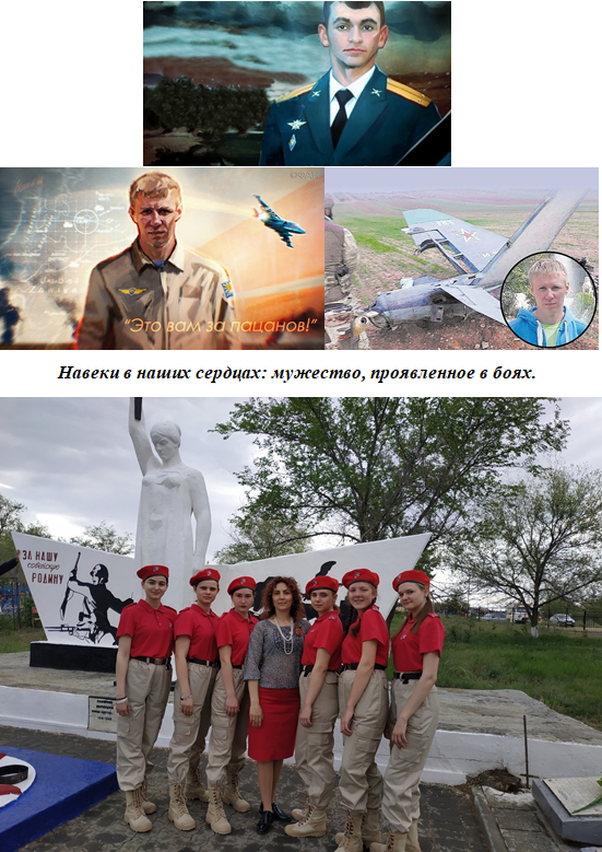 - подвиг Дмитрия Маковкина, нашего земляка, предотвратившего террористический акт на железнодорожном вокзале города Волгограда, подвиг двух друзей из «Грозовых ворот», подвиг героя Российской Федерации – лётчика, майора Романа Филиппова и спецназовца А.Прохоренко; и конечно, выпускников нашей школы, погибших в зоне СВО: