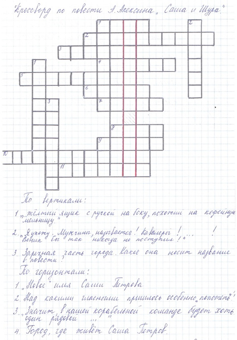 Использование занимательных заданий, таких, как разгадывание зашифрованной фразы (проверка, как внимательно прочитан текст, где говорится об особенностях шифра А.Рыбаков «Кортик») или решение кроссворда по повести А.Алексина «Саша и Шура».