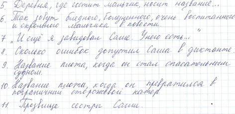 - Сколько ошибок сделал Шура, когда помогал Андрею Никитичу писать письмо родным? (4)