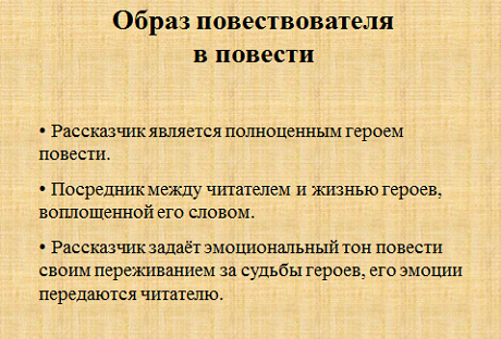 Образ рассказчика-повествователя в повести. (Слайд 14)