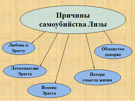 - Для Лизы потеря Эраста – утрата жизни. Дальнейшее существование лишено смысла! Она накладывает на себя руки!