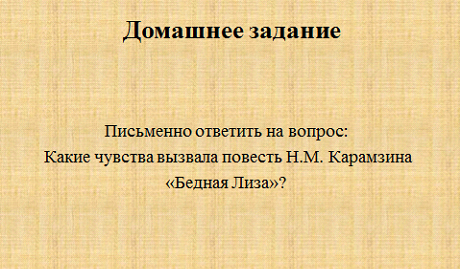 Письменно ответить на вопрос: Какие чувства вызвала повесть Н.М.Карамзина «Бедная Лиза»?