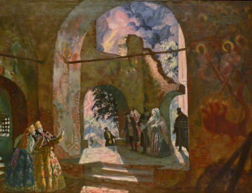 Кустодиев. Эскиз декорации к 4 акту драмы Островского «Гроза».