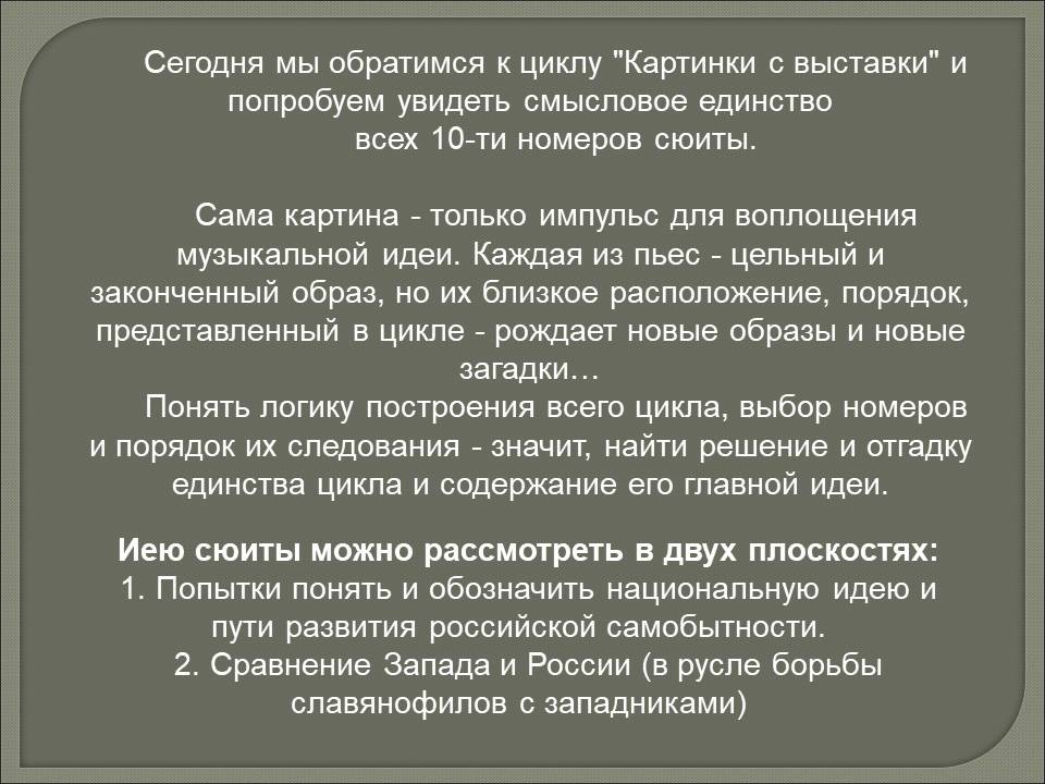 - Смысловое единство фортепианного цикла Модеста Мусоргского "Картинки с выставки"