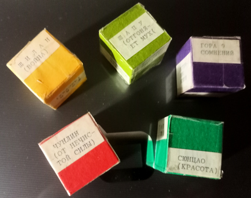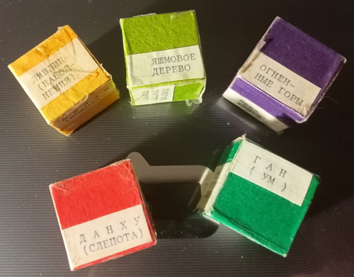 Второй этап. Во время рассказа учителя о китайской мифологии дети составляют словарь мифологических персонажей. На дом дети получают задание сделать игровой кубик, на каждой из 6 граней которого будет изображение того или иного животного, птицы, дерева, растения, местности. На следующем уроке дети придумывают сюжет своей сказки с использованием кубика. Кинув кубик, ребенок получает одного персонажа с его функцией, исходя из которой придумывается сюжет волшебной сказки. Например, если выпала зелёная утка с красным хвостом, излечивающая от бесплодия, то героем сказки может быть человек, который отправляется на поиски этой утки, чтобы его (или чья-то) жена могла родить ребенка. Если Линлин – бык, приносящий наводнения, то герой, чтобы избавить свою деревню от наводнений, отправляется на поиски змеи Фэйн, приносящей засуху и так далее. Таким образом, свойства мифологического персонажа определяют завязку сказки. Также эти персонажи могут выступать как помощники в процессе развёртывания сюжета. Учащийся должен выбрать себе растение, птицу, животное, местность, в которой будет происходить действие сказки. Здесь важно не допустить перегрузки и правильно ввести персонажа в сюжет. Тех персонажей, которые связаны с бедствием или злом, логичнее поместить в начало, а тех, на чьи поиски герой отправляется, чтобы избавиться от зла, в конец. Например: герой отправляется на поиски птицы Бифан, чтобы избавить царство от пожаров, а для того чтобы поймать эту птицу, ему нужен бык Линлин, приносящий наводнения и тем самым тушащий пожары. Или: некто заболевает, а его сын отправляется на поиски чудесного снадобья. И так далее. В процессе работы я немного изменила этот этап работы, изготовив «волшебные кубики»: на сторонах одного были написаны названия птиц, другого - животных, третьего – растений, четвёртого – деревьев и пятого – мест. Каждый кидал кубик, и с тем, что ему выпадало, сочинял сказку. С одной стороны, выбор волшебных персонажей стал ограниченнее, с другой – было интересно сравнивать, что у кого получилось в итоге с похожими мифологическими элементами. Можно внести еще какие-то изменения, но общий принцип ясен.