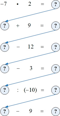 На доске записана цепочка примеров, которые нужно выполнить строго по указанию стрелки. При правильном выполнении заданий получают первое число цепочки.