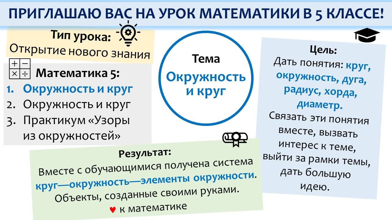 Математика, 5 класс. Тема по КТП: «Окружность и круг» |