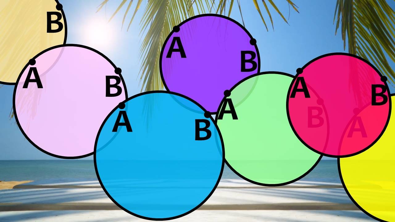 ДВА КРУГА разного цвета и диаметра (не более 20 см) с обозначенными точками А и В.