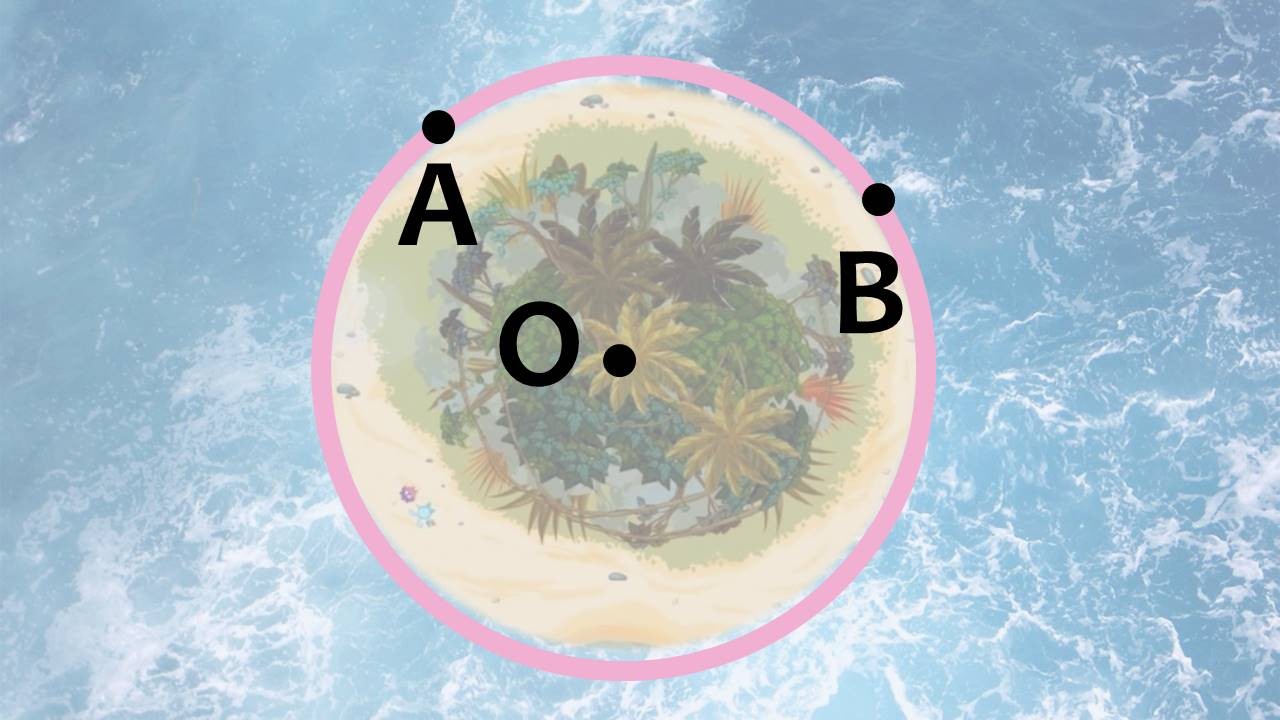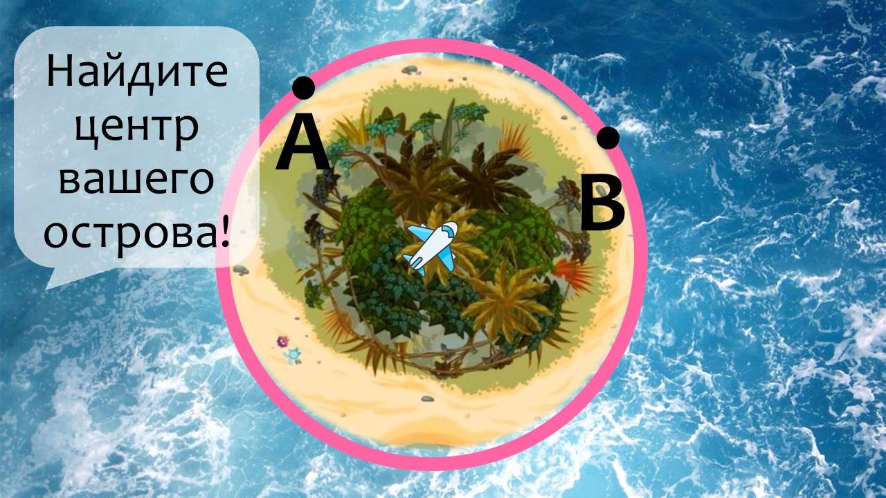 А теперь давайте из точки В отправимся через центр на противоположный край острова. |